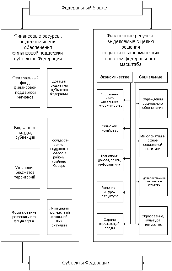 Выводы и предложения. На данном этапе становления российской экономики нужны новые крупные инициативы (одна из них - принятие нового Налогового кодекса). Необходимо совместными усилиями отрабатывать эффективные, всем понятные механизмы смягчения бюджетных диспропорций, поиска компромиссов между интересами страны в целом и отдельных регионов, между интересами регионов с различной бюджетной обеспеченностью. В заключении проведенного мной исследования данной темы хочется внести некоторые предложения; - сочетание интересов на всех уровнях бюджетной системы; - распределение налогов на постоянной основе (полностью или в фиксированной доле) между звеньями бюджетной системы, обеспечивающее минимально необходимый уровень собственных доходов территориальных бюджетов; - выравнивание посредством бюджетного регулирования до минимально необходимого уровня душевых бюджетных доходов территорий, не имеющих достаточного налогового потенциала; - максимально возможное сокращение встречных финансовых потоков; - компенсация бюджетам в случае уменьшения доходов или увеличения расходов вследствие решений, принимаемых федеральными органами государственной власти и органами государственной власти субъектов Федерации; - выравнивание развития отстающих по объективным причинам территорий до минимально необходимого уровня; - создание условий для повышения заинтересованности органов государственной власти субъектов Федерации и органов местного самоуправления в увеличении собственной доходной базы бюджета; - взаимная ответственность между звеньями бюджетной системы за соблюдение обязательств по межбюджетным отношениям; - ясность и гласность межбюджетных отношений. Самое же главное - необходимо использовать межбюджетные механизмы для создания стимулов к проведению реальных реформ на региональном и местном уровне, доведению их конкретных результатов до каждого человека. Создание эффективной системы бюджетных отношений между различными уровнями власти становится сегодня одним из условий сохранения единства Федерации. В настоящее время объем налоговых доходов, закрепленных за региональными и местными органами управления, не соответствует расходам, также закрепленным за этими органами власти. Еще более усугубляя ситуацию, ответственность за решение социальных проблем постоянно перекладывается на регионы, возможности которых постепенно сужаются. Приходится признать, что ухудшение общей экономической ситуации в стране, недобор налогов вызваны потерей контроля над денежным обращением. По некоторым оценкам, сегодня около 300 трлн. рублей обращается в виде денежных суррогатов, почти 40 млрд. долларов - в качестве сбережений населения. В свою очередь, бартерные сделки охватывают от трети до половины товаро-денежного оборота страны. В настоящее время основная часть бюджетных доходов регионов формируется за счет отчислений от федеральных налогов. Федеральные же налоги, где бы они не собирались, “принадлежат” Федерации. Поэтому в настоящее время Федерация делится своими доходами с регионами для того, чтобы региональные власти могли лучше исполнять возложенные на них функции. Более семидесяти субъектов Федерации получают трансферты из Федерального фонда финансовой поддержки регионов. Но беда не в том, что почти все су