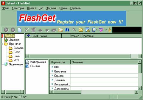 FlashGet обладает огромным количеством возможностей: собственная "звонилка",