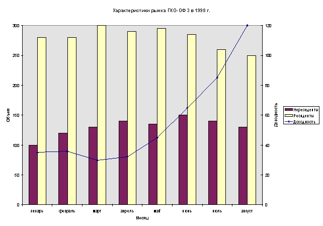 3.3. Текущее состояние рынка ценных бумаг и банковской системы, перспективы развития. Текущее система рынка ценных бумаг и банковской системы характеризуется кризисом. В развитии кризиса можно выделить два этапа. В первом полугодии кризис носил преимущественно скрытую форму, когда удавалось противостоять наиболее острым проявлениям. Решение бюджетных проблем достигалось за счет наращивания государственного долга и расходования золотовалютных резервов страны. Вместе с тем высокие процентные ставки на финансовом рынке свидетельствовали о серьезных проблемах. С середины августа 1998 года кризис перешел в явную форму и охватил все стороны экономической жизни России: Правительство Российской Федерации оказалось не в состоянии обслуживать долг и выполнять свои текущие обязательства, произошла практически полная остановка финансовых рынков, золотовалютные резервы страны оказались на низком уровне. Последовавшая девальвация рубля определила новое состояние экономики, которое характеризуется в первую очередь, скачком инфляции, ограничением возможностей рыночного финансирования, потерей доверия населения к финансовой системе и банкам. Банковская система. Ситуация в банковской системе России до августа 1998 года определялась тенденциями, сложившимися в 1995-1997 годах. Банковская система была в значительной степени ориентирована на развитие операций на финансовых рынках, прежде всего на рынке государственного долга. При этом с конца 1997 года банковская система стала испытывать негативное влияние кризиса на российском финансовом рынке из-за падения цен на государственные ценные бумаги. При этом российские банки к началу 1998 года накопили значительные обязательства перед банками-нерезидентами по кредитам в иностранной валюте(12,7% пассивов), которые сохранялись и в 1998 году. Обеспеченность данных кредитов залогом, как правило, российских государственных ценных бумаг усилила зависимость финансового положения банков от ситуации на рынке государственного долга. К середине 1998 года финансовое состояние банков ухудшалось даже в условиях относительной финансовой стабильности. Если на 1.01.98 доля финансово-стабильных банков в общем количестве действующих кредитных организаций составляла 66%, то на 1.08.98 она снизилась до 61,5%; доля проблемных банков, наоборот, увеличилась с 32, 4% до 36,7%. За последние несколько лет состав банков-олигархов мало менялся. Во всяком случае, верхушка списка крупнейших банков из месяца в месяц, из года в год оставалась практически неизменной. Однако после 17 августа 1998 года в этом списке нет ряда банков, еще недавно занимавших верхние строчки рейтинга. Это закономерное следствие финансового кризиса, который наиболее болезненно сказался именно на самых крупных банках. Чтобы оценить масштабы банковского кризиса, достаточно сказать, что , III квартал с отрицательным капиталом(т.е. не только растеряв собственные деньги, но и погрязнув в долгах) закончили 187 банков, а с убытками - 590, почти 40% всех российских банков. В список неудачников вошли Инкомбанк, Онэксим, МФК, СБС-АГРО, Менатеп, «Российский кредит», Банк Москвы, Промстройбанк России, Альфа-банк, Гута-банк, Мосбизнесбанк, МАПО-банк, ДиалогБанк, «Империал», Межкомбанк и другие. Рынок государственных ценных бумаг на первом этапе кризиса продолжал оказывать решающе